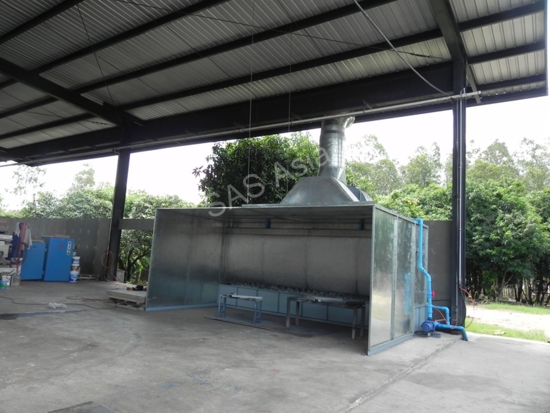 ห้องพ่นสีแบบม่านน้ำใช้น้ำเป็นตัวดักจับละอองสี ซึ่งเหมาะสำหรับ SME ที่ต้องการประสิทธิภาพสูง