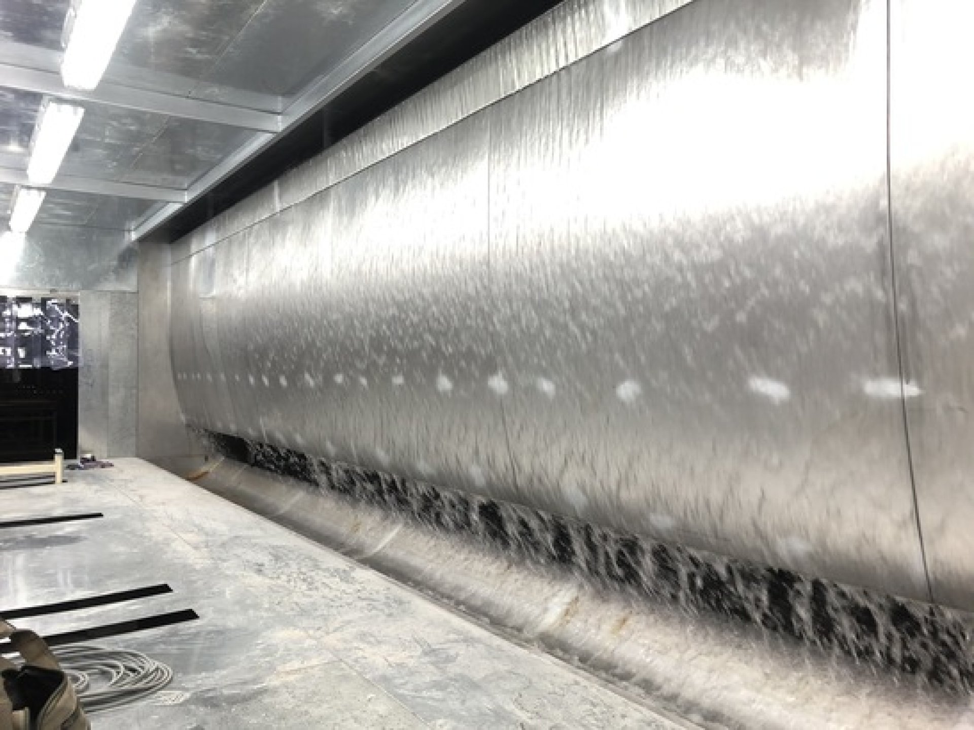 Water Curtain Spray Booth คือห้องพ่นสีที่ใช้ ม่านน้ำ (Water Curtain System) ดักจับละอองสีจากการพ่นเมื่อพ่นสี ละอองสีจะถูกดูดผ่านม่านน้ำ ทำให้สีถูกจับรวมกับน้ำและไหลลงสู่ถังบำบัดด้านล่าง